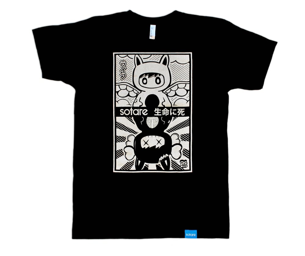Heaven and Hell is printed on a 100% cotton, ring-spun, American Apparel tee. The shirt is manufactured and printed in the USA.