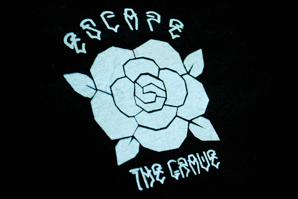 The Reaper is the second of three shirts in the Escape the Grave Series. Screen printed by hand in Maryland on a jet black, ring spun cotton tee. The Los Angeles Apparel tees are made in America. Each shirt is finished with a Sotare hem tag.