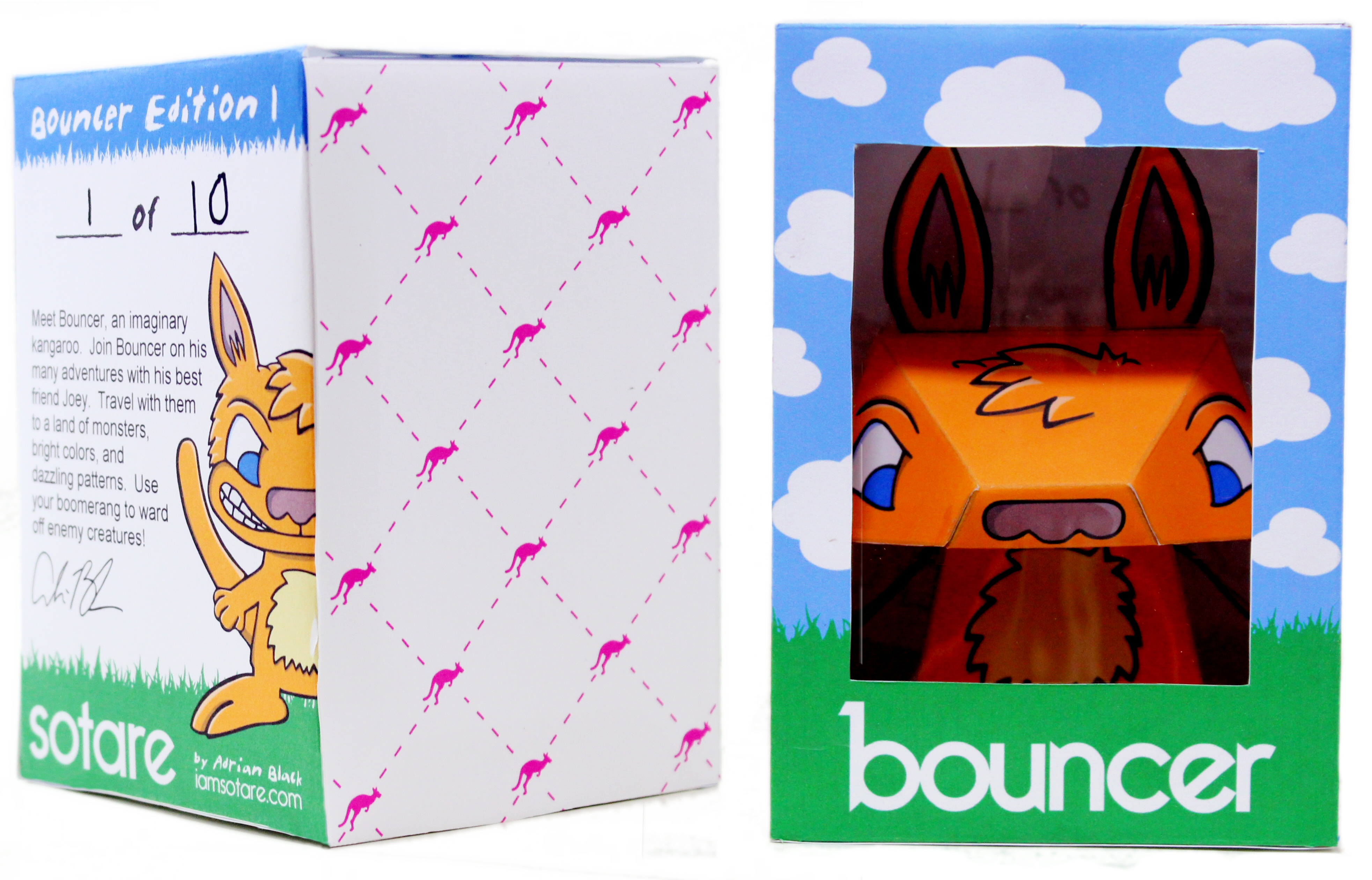 Each paper toy comes with one mini boomerang and one collector's card, all in a handmade collector's box.