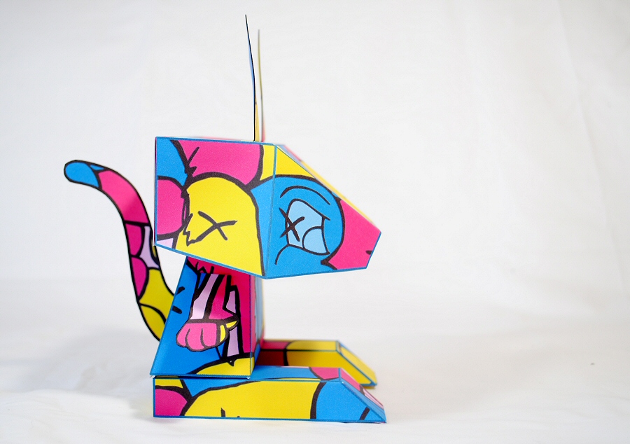 This is a hand-made paper toy. The toy measures approximately 7.5 inches in height. Comes in a special box.
